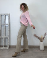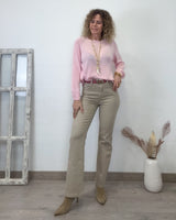 Jersey rosa de cuello redondo básico. Tejido muy suave, corte recto.