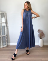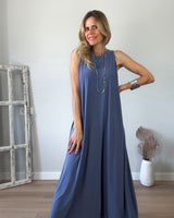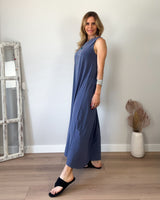 Vestido de punto frío largo azulón. Tirante ancho muy cómodo y con espectacular caída.