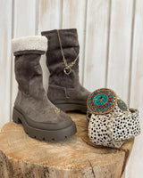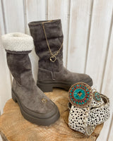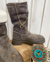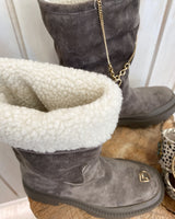 Botas estilo track en color gris marengo con cremallera lateral y borrego interior. Suela gris gruesa. Muy cómodas!