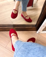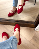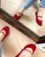 Zapato tipo mercedita rOna aterciopelada. Suela de goma. Tallan normal.