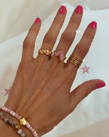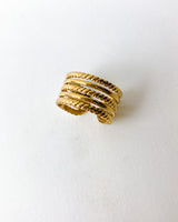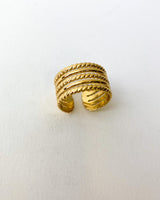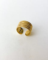 Anillo dorado de finos hilos en forma de cuerda. Acero bañado en Oro. Combina con anillos de otros colores y formas, un complemento elegante.
