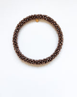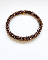Collar gargantilla de pequeños cristales formando un cordón elástico. Queda pegado al cuello.