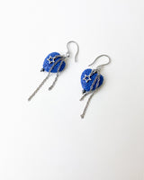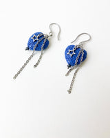 Pendiente largo con corazón azul de piedra volcánica, cadenas largas y estrella superpuesta en el corazón. Una preciosidad.