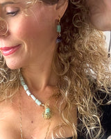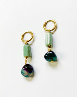 Pendiente largo de piedra de Agata verde junto con piedra natural verde y cierre de aro.